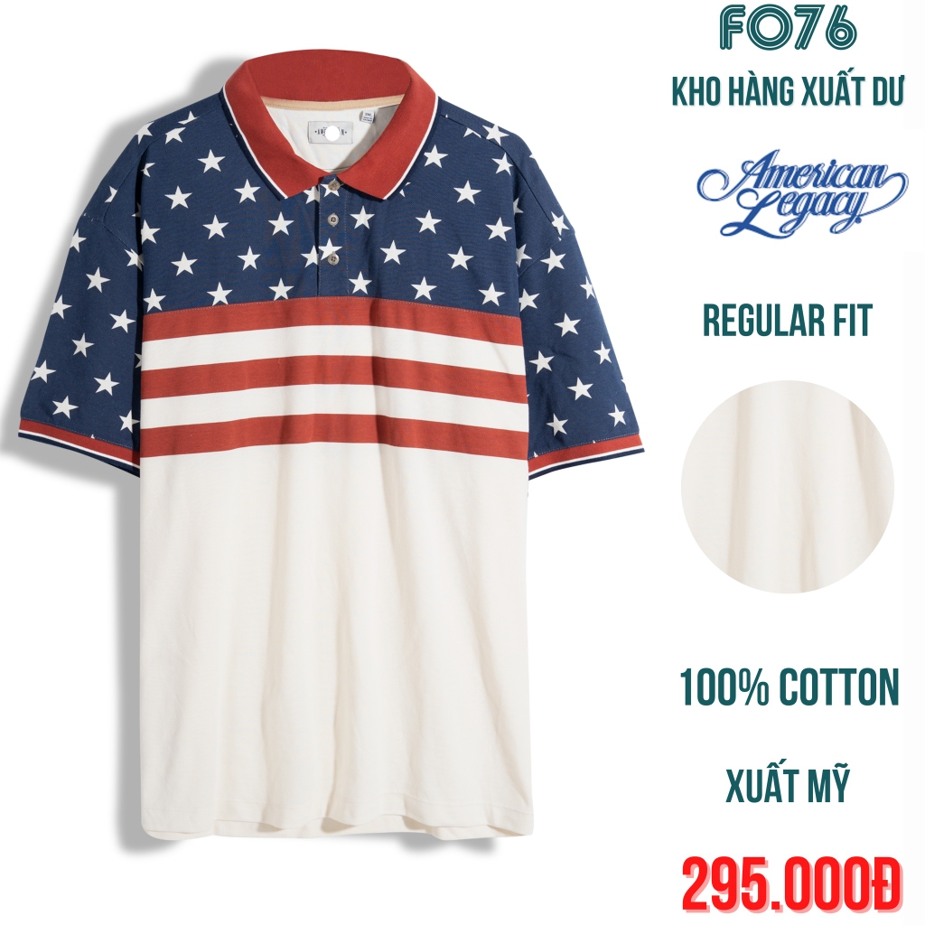 - AMERICAN LEGACY - ÁO THUN NAM POLO CÓ CỔ TAY NGẮN HOẠ TIẾT MÀU KEM