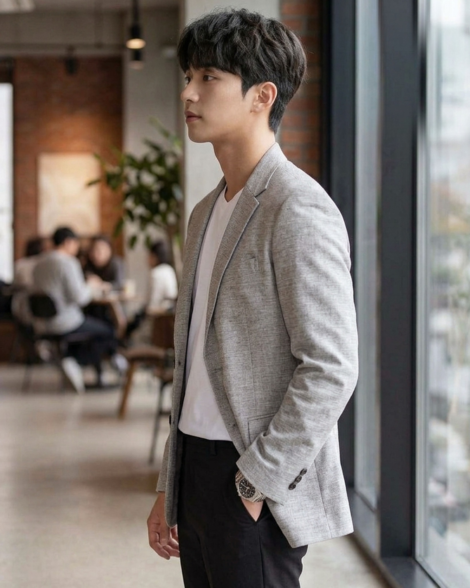 - Blazer nam xuất Hàn màu xanh đem đến phong cách thời trang chuẩn gu, thanh lịch mà không quá cầu kỳ, cứng nhắc.