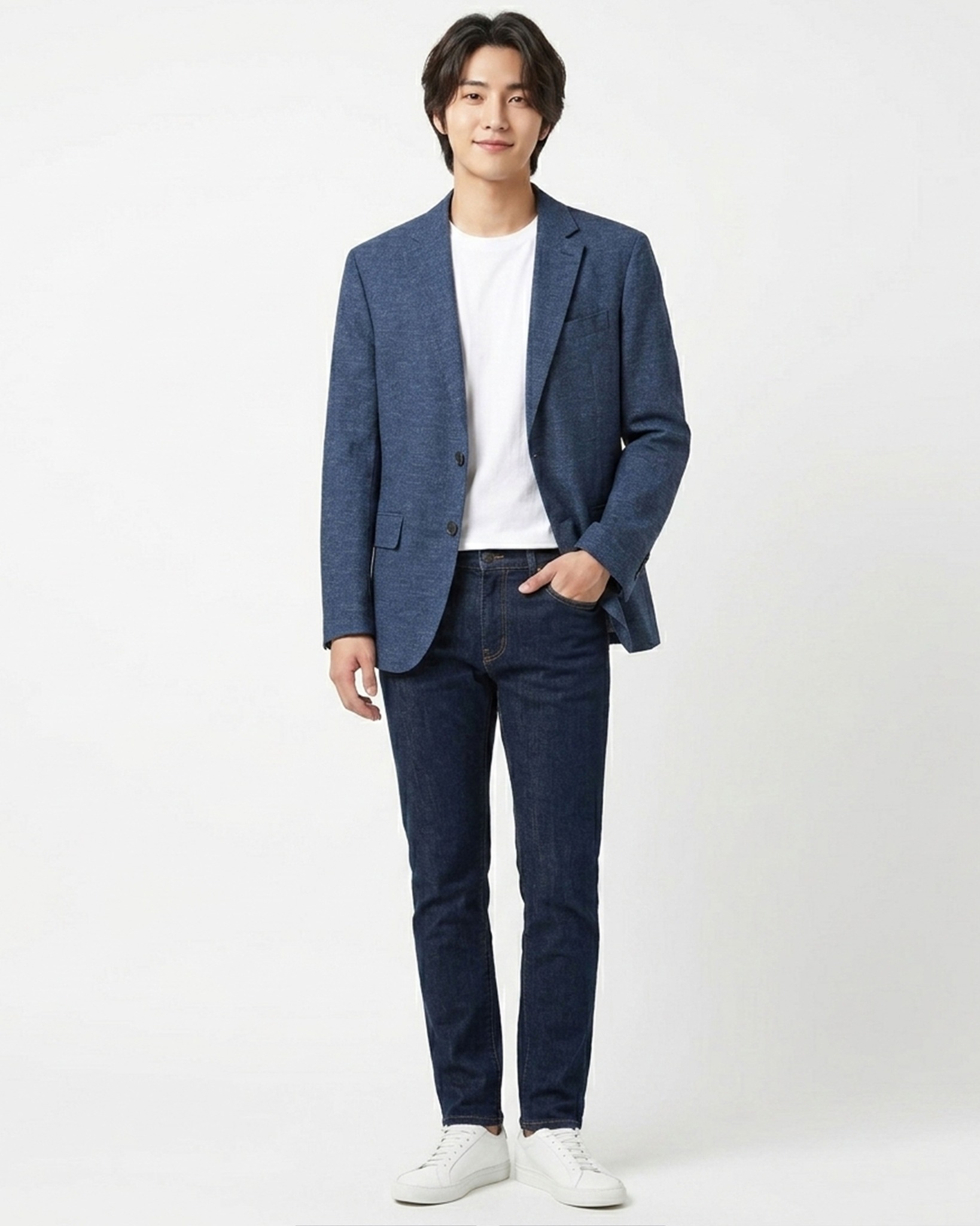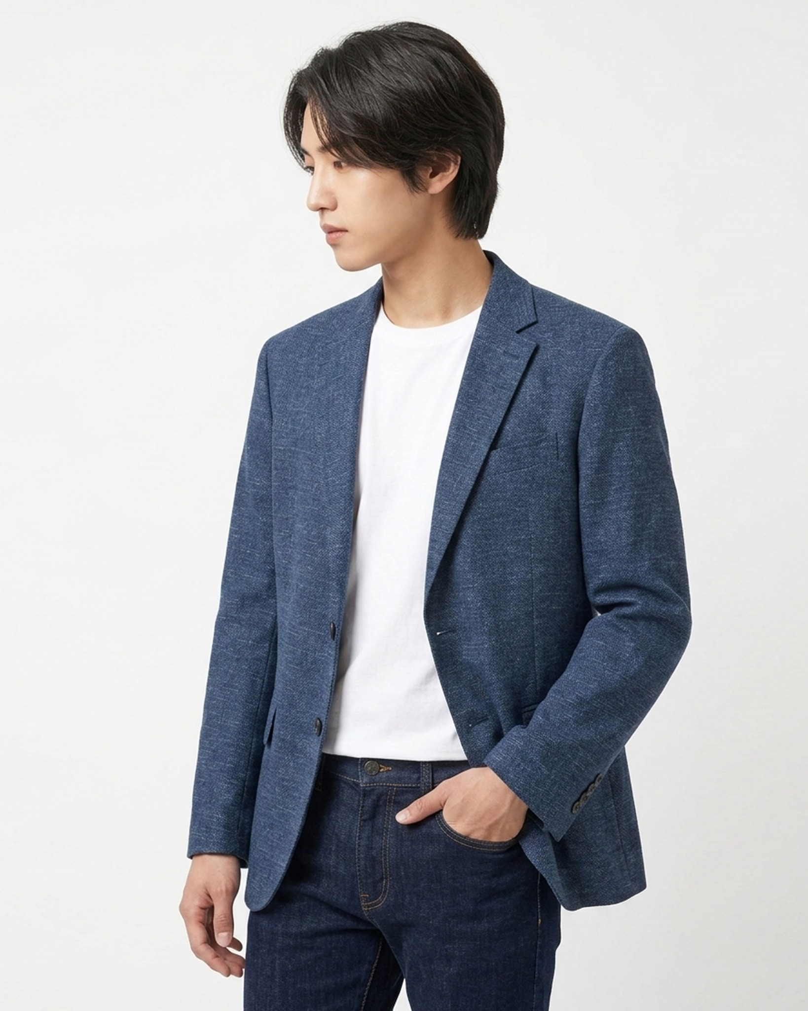 - Blazer nam xuất Hàn màu xanh đem đến phong cách thời trang chuẩn gu, thanh lịch mà không quá cầu kỳ, cứng nhắc.