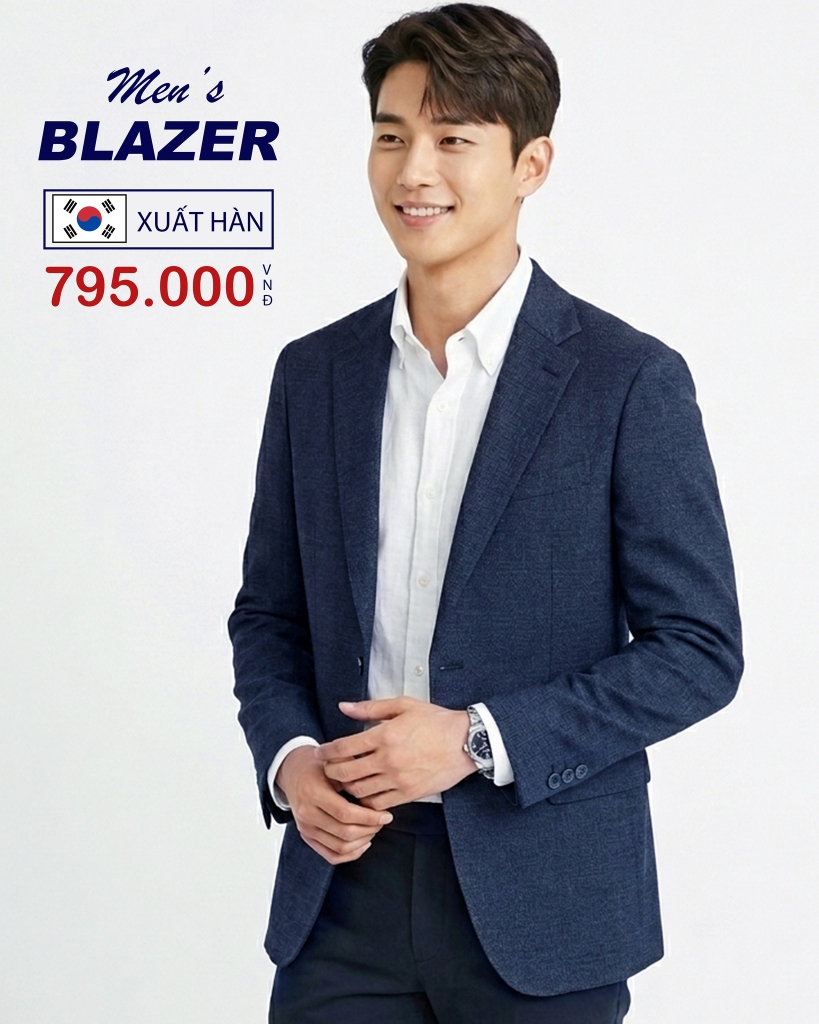 - ÁO BLAZER NAM XUẤT HÀN MÀU XANH NAVY BZ60408H1