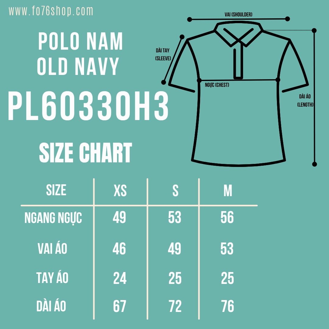 * Thông số cơ bản của sản phẩm FO76: Lấy chiếc áo mà các bạn đang mặc và cảm thấy vừa nhất sau đó đo các kích thước của áo và đối chiếu với bảng thông số của chúng tôi theo các kích thước sau: