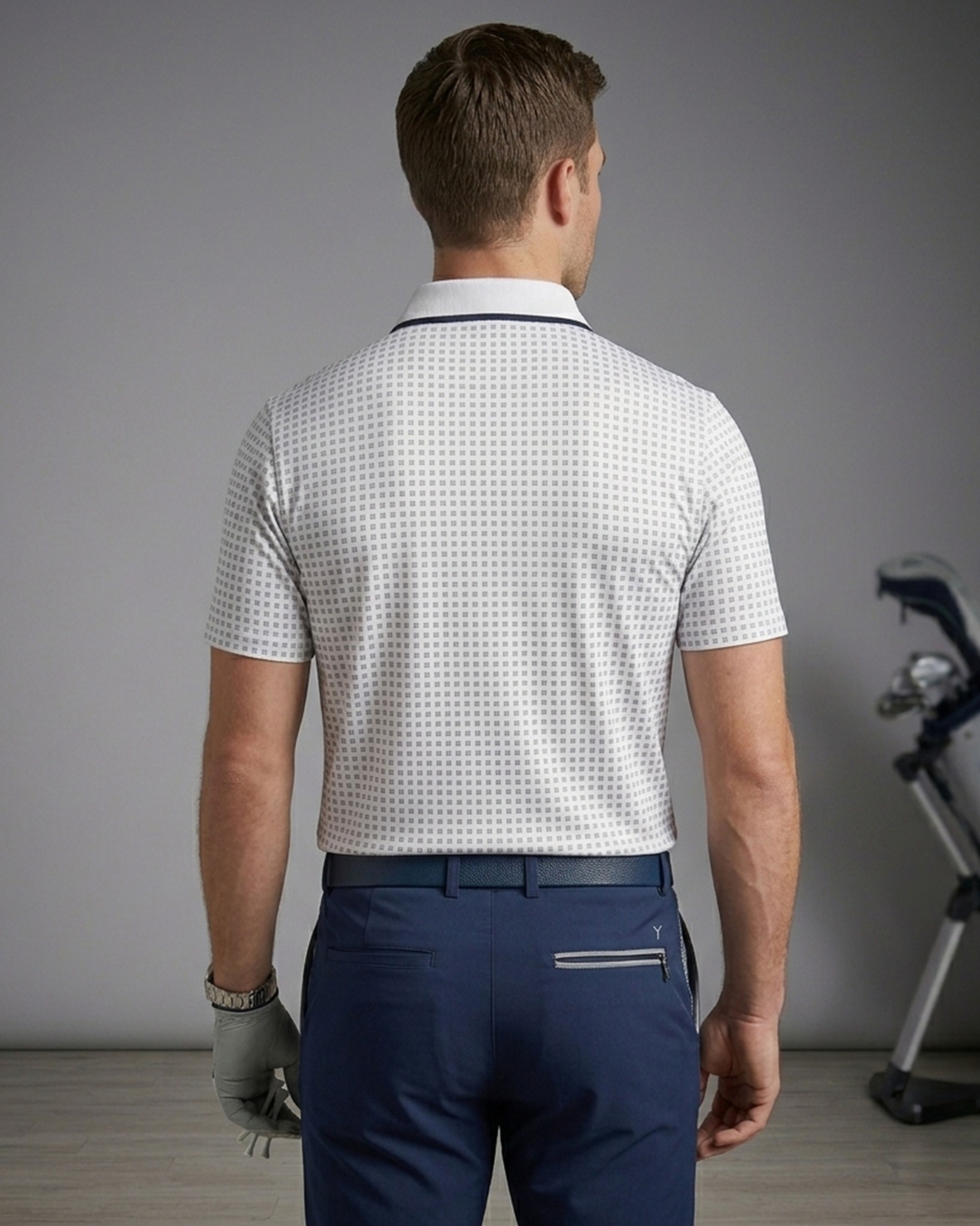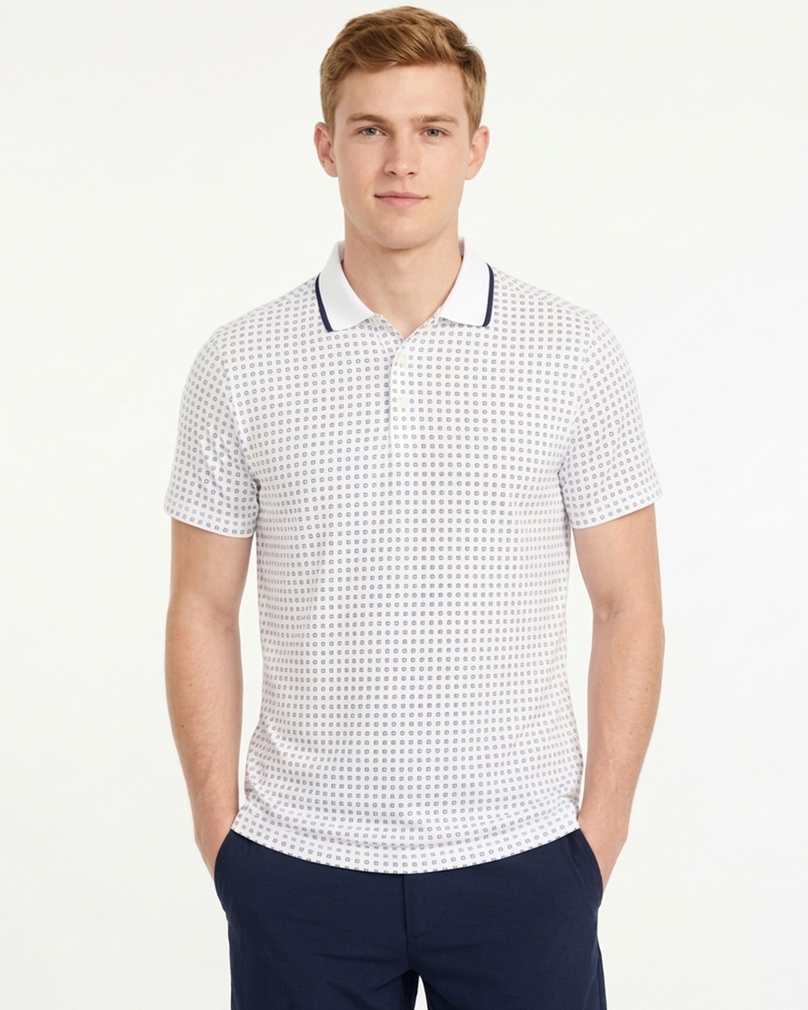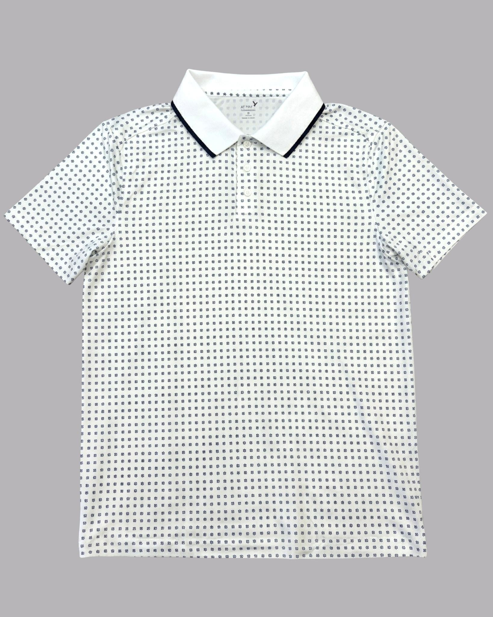 ÁO POLO GOLF NAM TAY NGẮN XUẤT MỸ HỌA TIẾT HOA NHÍ MÀU TRẮNG PL60330H3