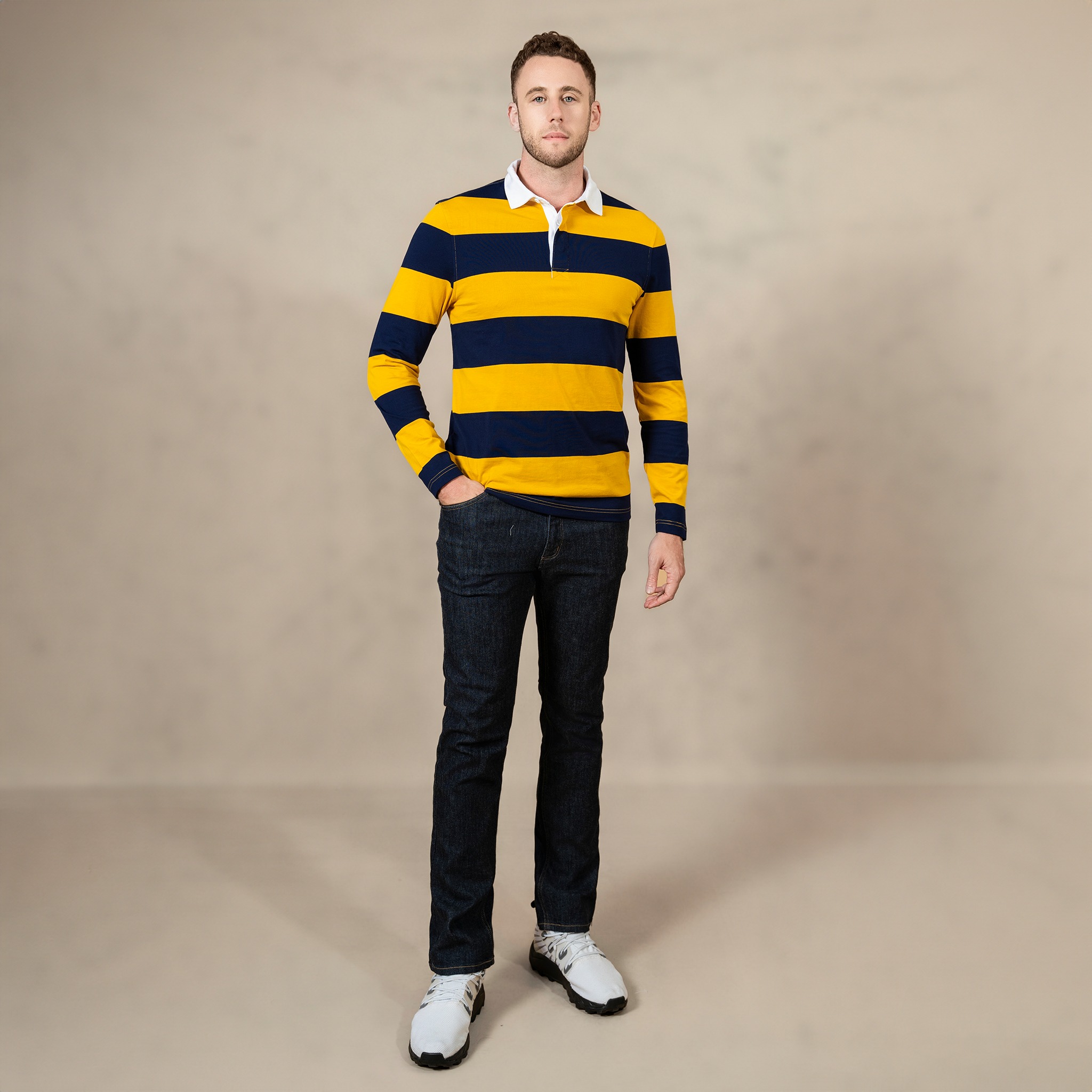 ÁO POLO NAM TAY DÀI XUẤT MỸ KẺ SỌC NGANG MÀU VÀNG PL4719H3