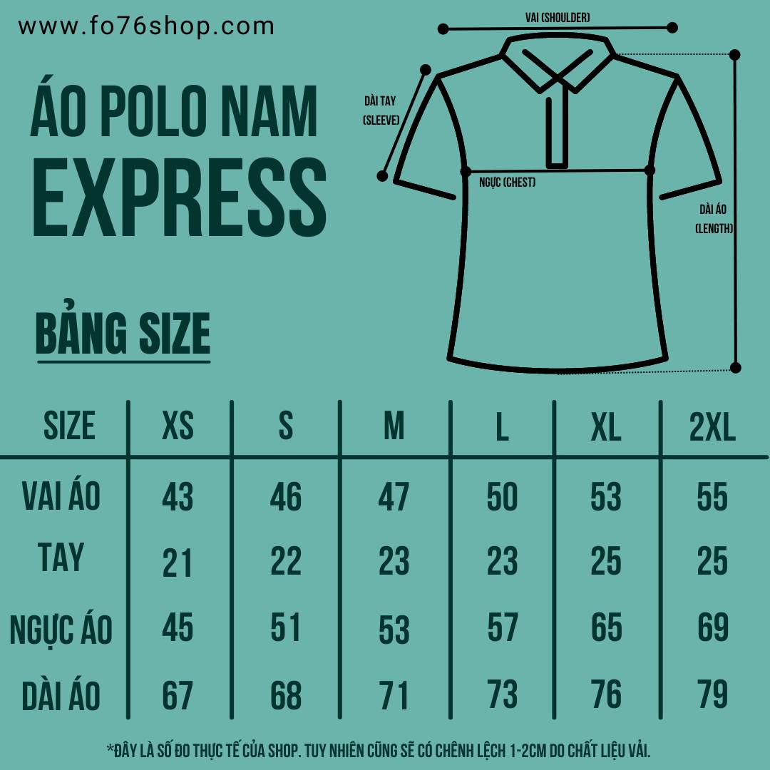 * Thông số cơ bản của sản phẩm FO76: Lấy chiếc áo mà các bạn đang mặc và cảm thấy vừa nhất sau đó đo các kích thước của áo và đối chiếu với bảng thông số của chúng tôi theo các kích thước sau: