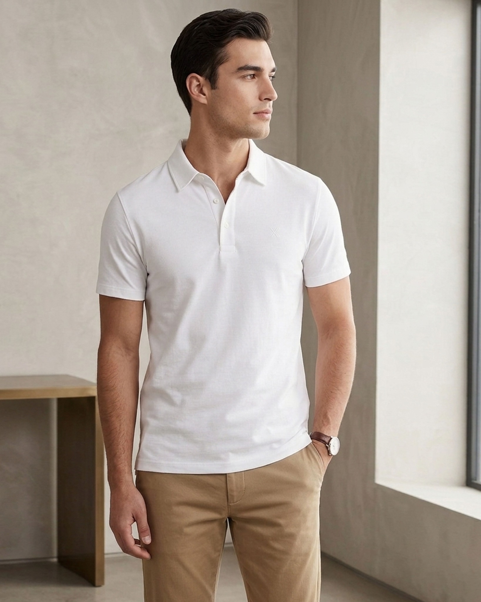 ÁO POLO NAM TAY NGẮN XUẤT MỸ MÀU TRẮNG PL60312T8