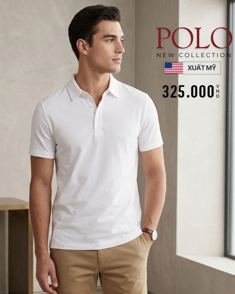 - ÁO POLO NAM TAY NGẮN XUẤT MỸ MÀU TRẮNG PL60312T8