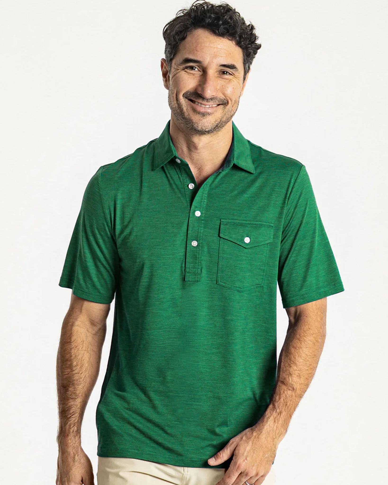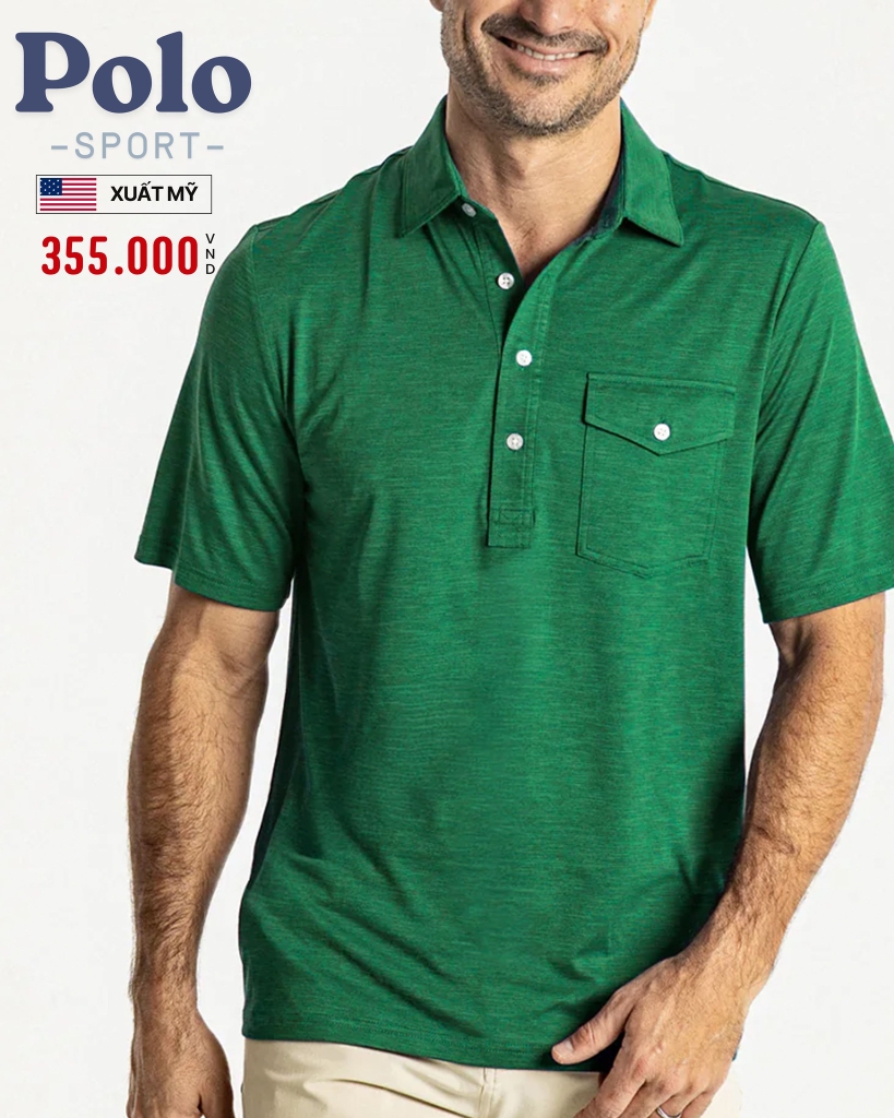 - ÁO POLO THỂ THAO NAM TAY NGẮN CÓ TÚI XUẤT MỸ MÀU XANH LÁ PL60408N3