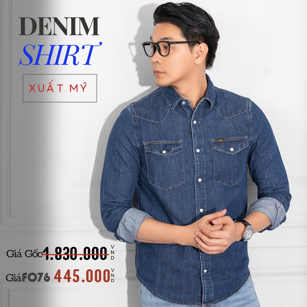 - ÁO SƠ MI NAM DENIM DÀI TAY XUẤT MỸ MÀU XANH ĐẬM