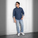ÁO SƠ MI NAM DENIM DÀI TAY XUẤT MỸ MÀU XANH ĐẬM