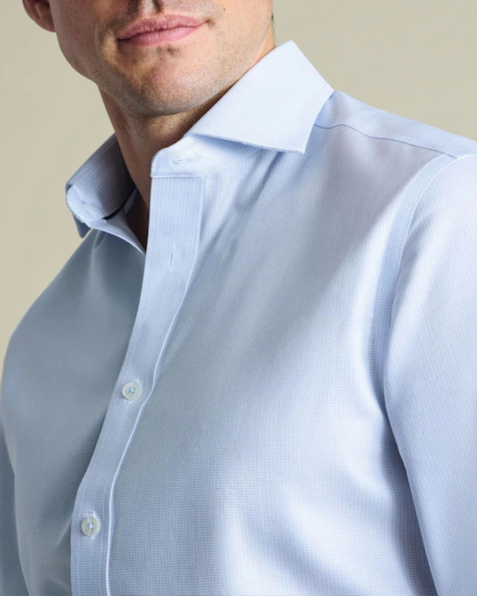 - Áo sơ mi nam tay dài gây ấn tượng với kiểu vải dệt chéo đặc trưng, bề mặt vải mịn màng, mượt mà, chống nhăn đem lại cảm giác cực kỳ thoải mái trên da.