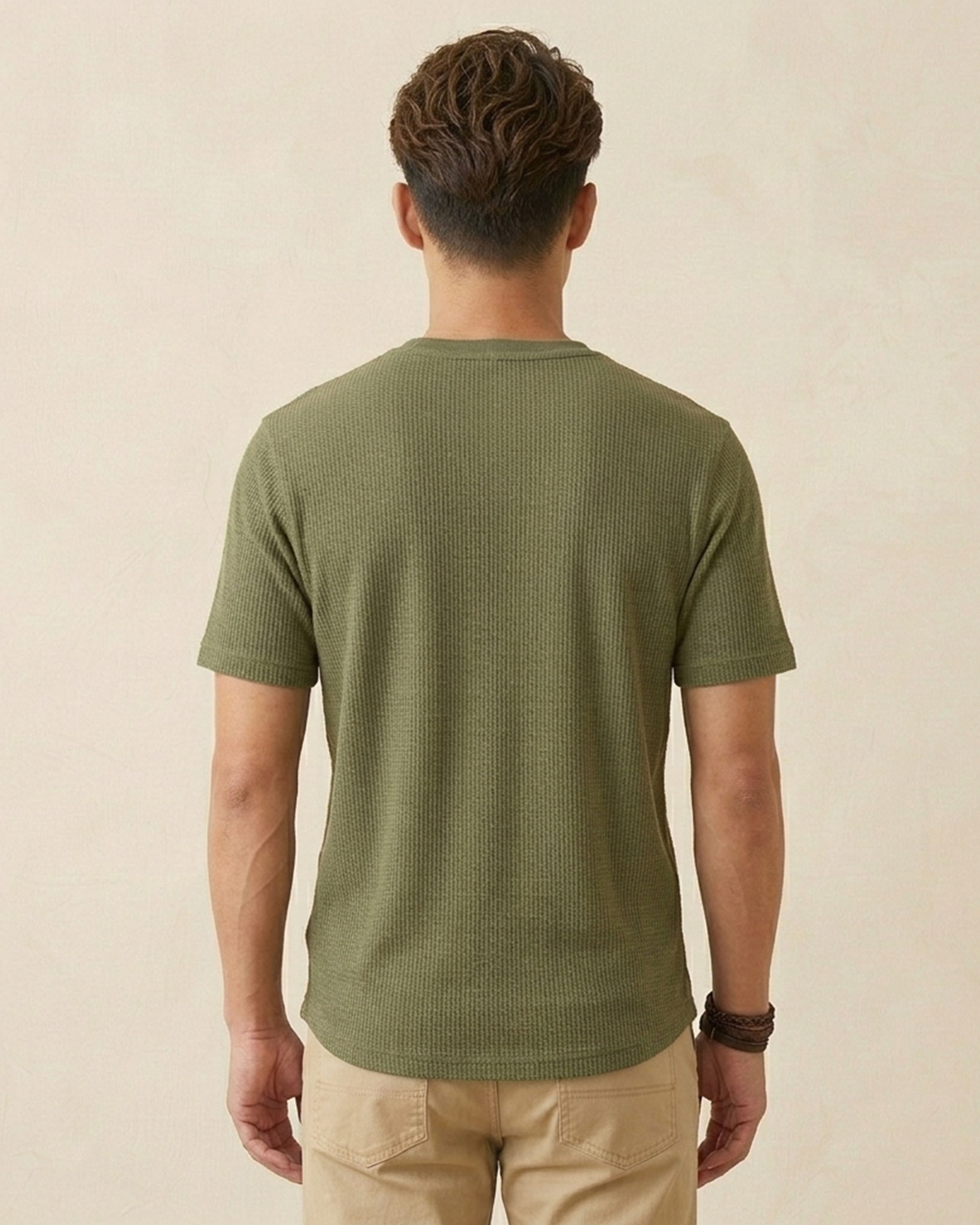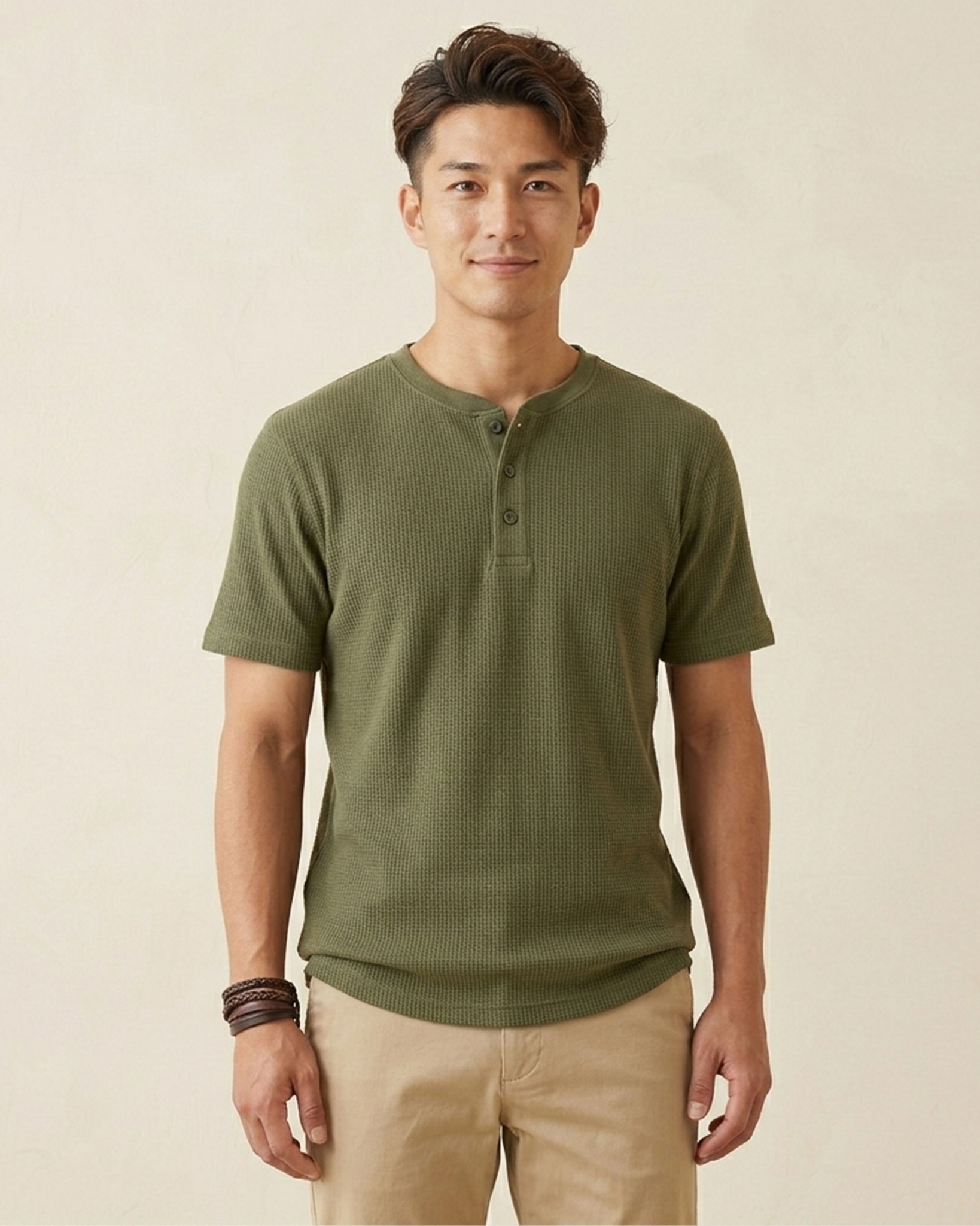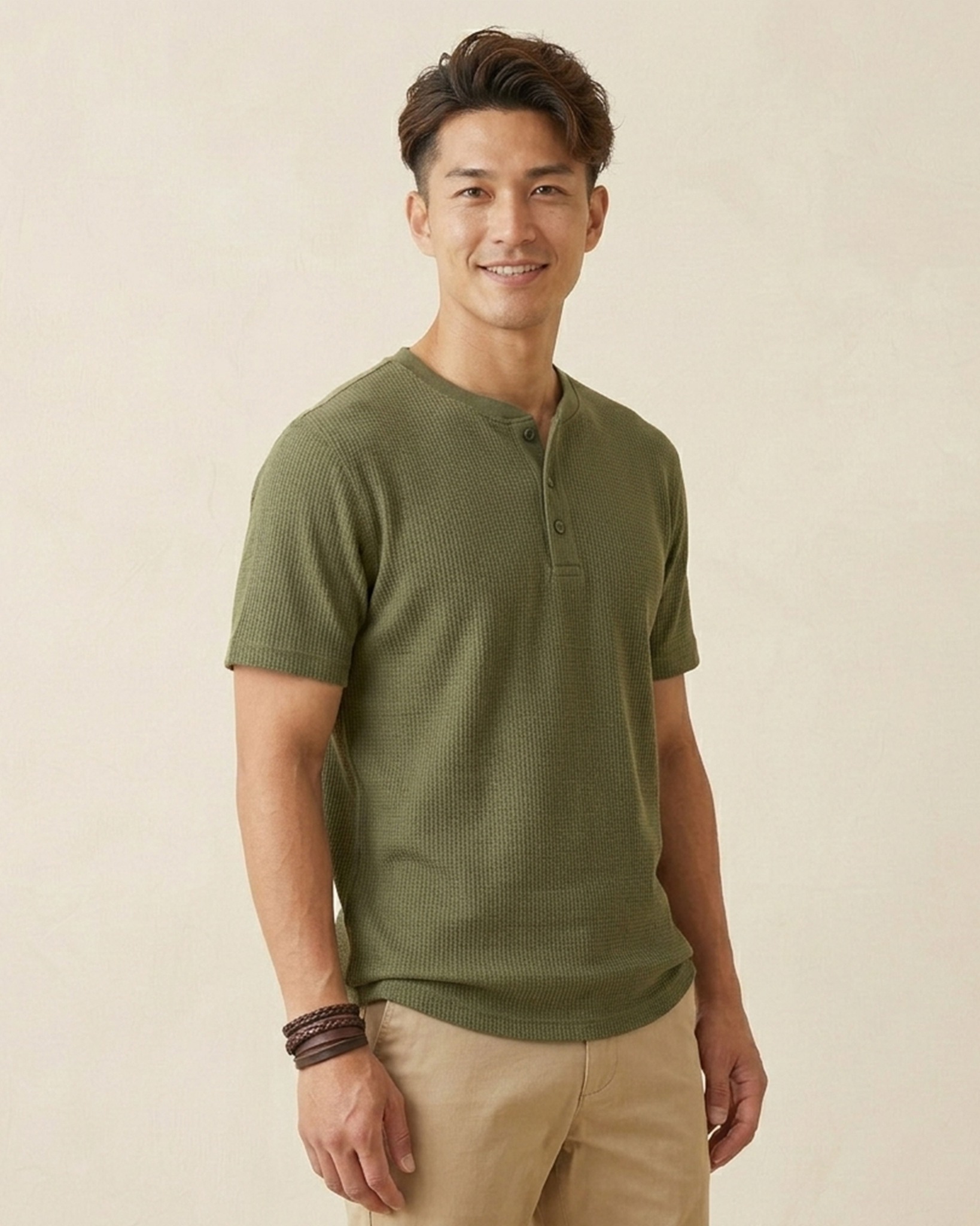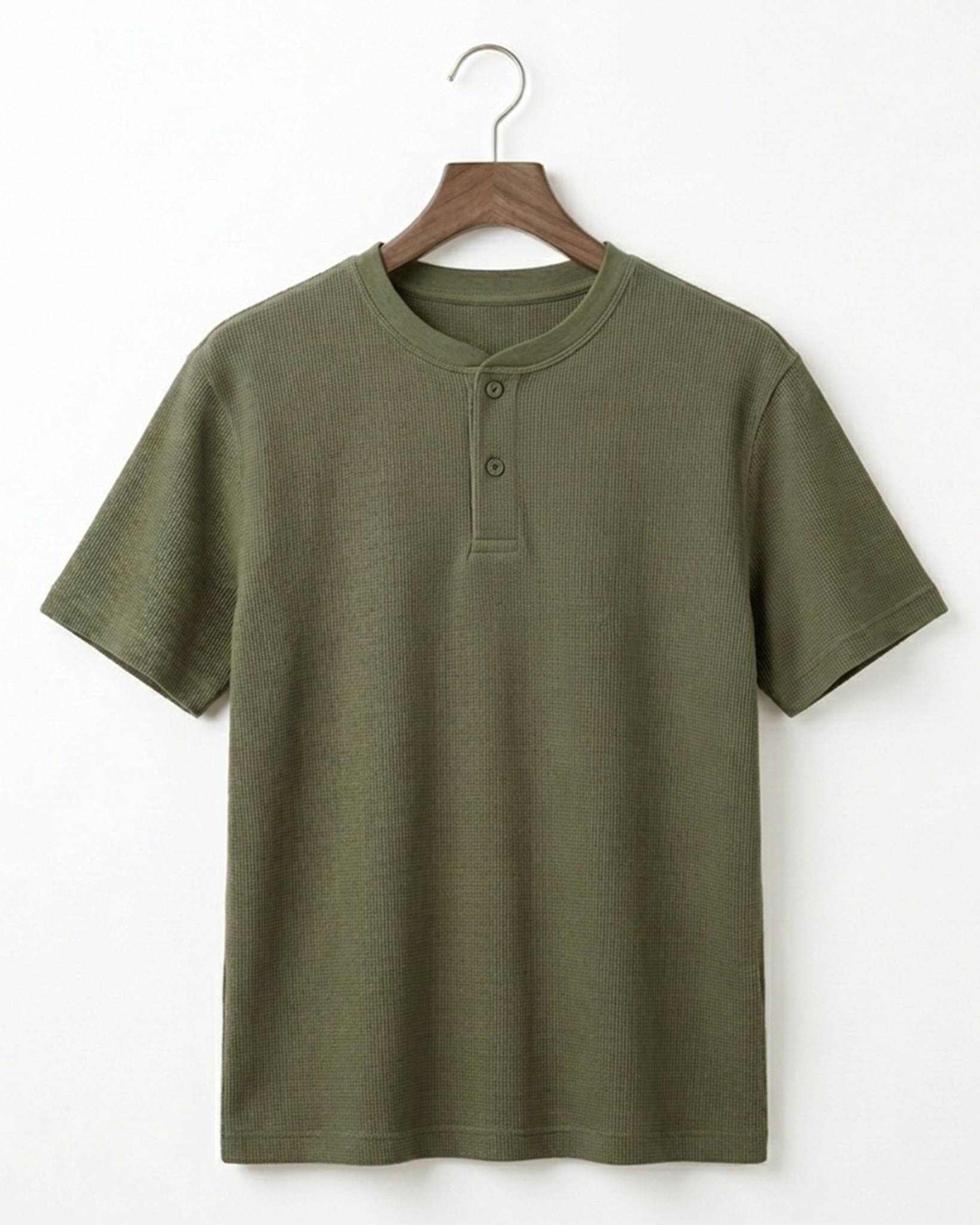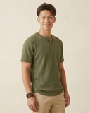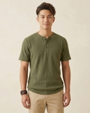 - ÁO THUN NAM CỔ HENLEY TAY NGẮN VẢI DRY WAFFLE XUẤT NHẬT MÀU RÊU AT60402N6
