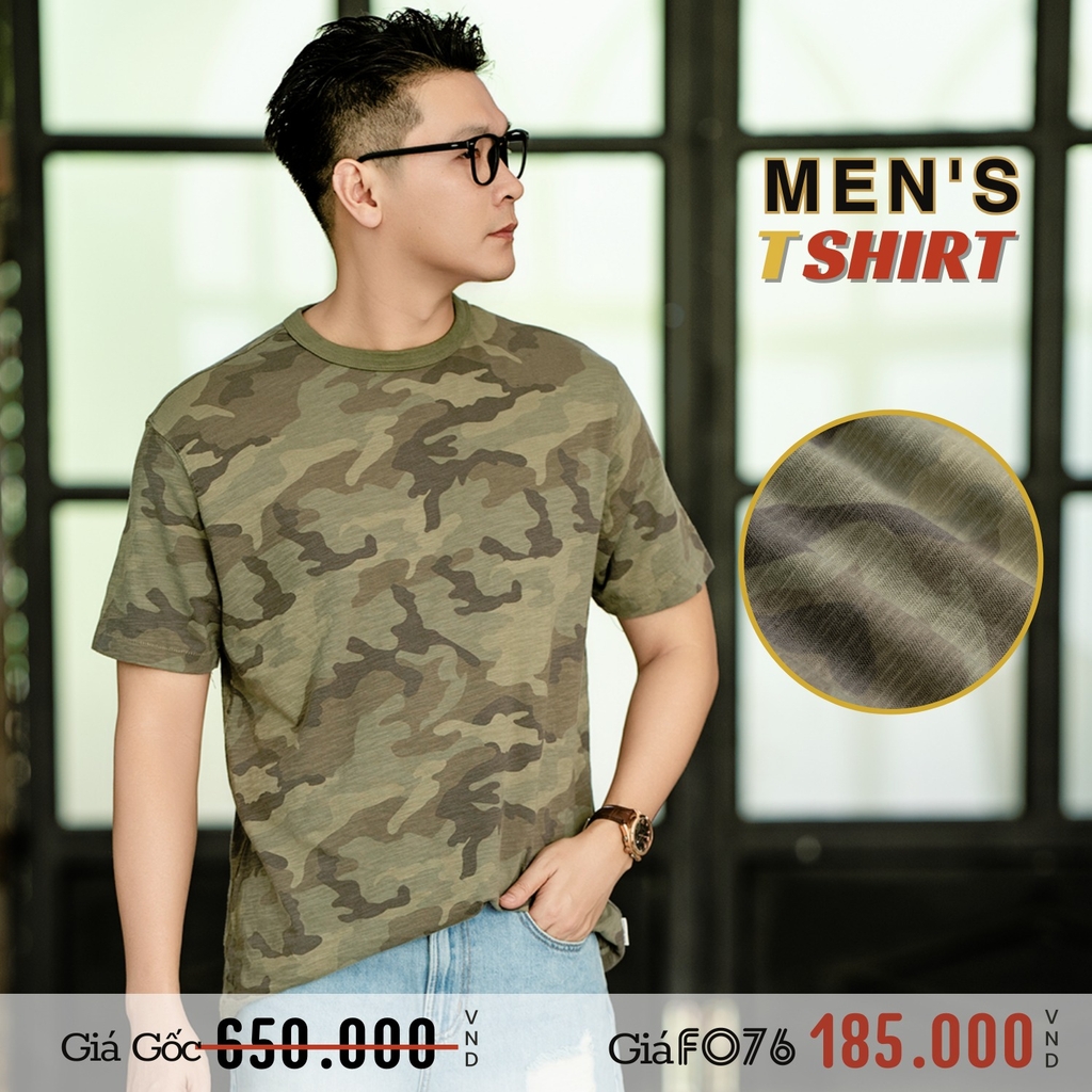 ÁO THUN NAM CỔ TRÒN TAY NGẮN XUẤT MỸ HOẠ TIẾT CAMOUFLAGE MÀU RÊU