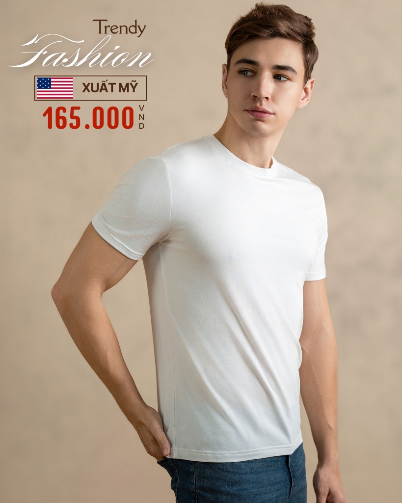 - ÁO THUN NAM CỔ TRÒN TAY NGẮN XUẤT MỸ MÀU TRẮNG AT4909L8