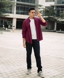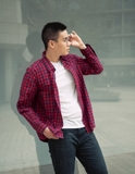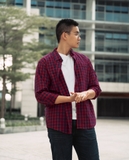 - BLUE MOUNTAIN - ÁO SƠ MI NAM TAY DÀI MÀU ĐỎ ĐEN NHUYỄN