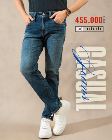 QUẦN JEAN NAM PHOM SLIM FIT XUẤT HÀN MÀU XANH ĐẬM QJ4B09D2
