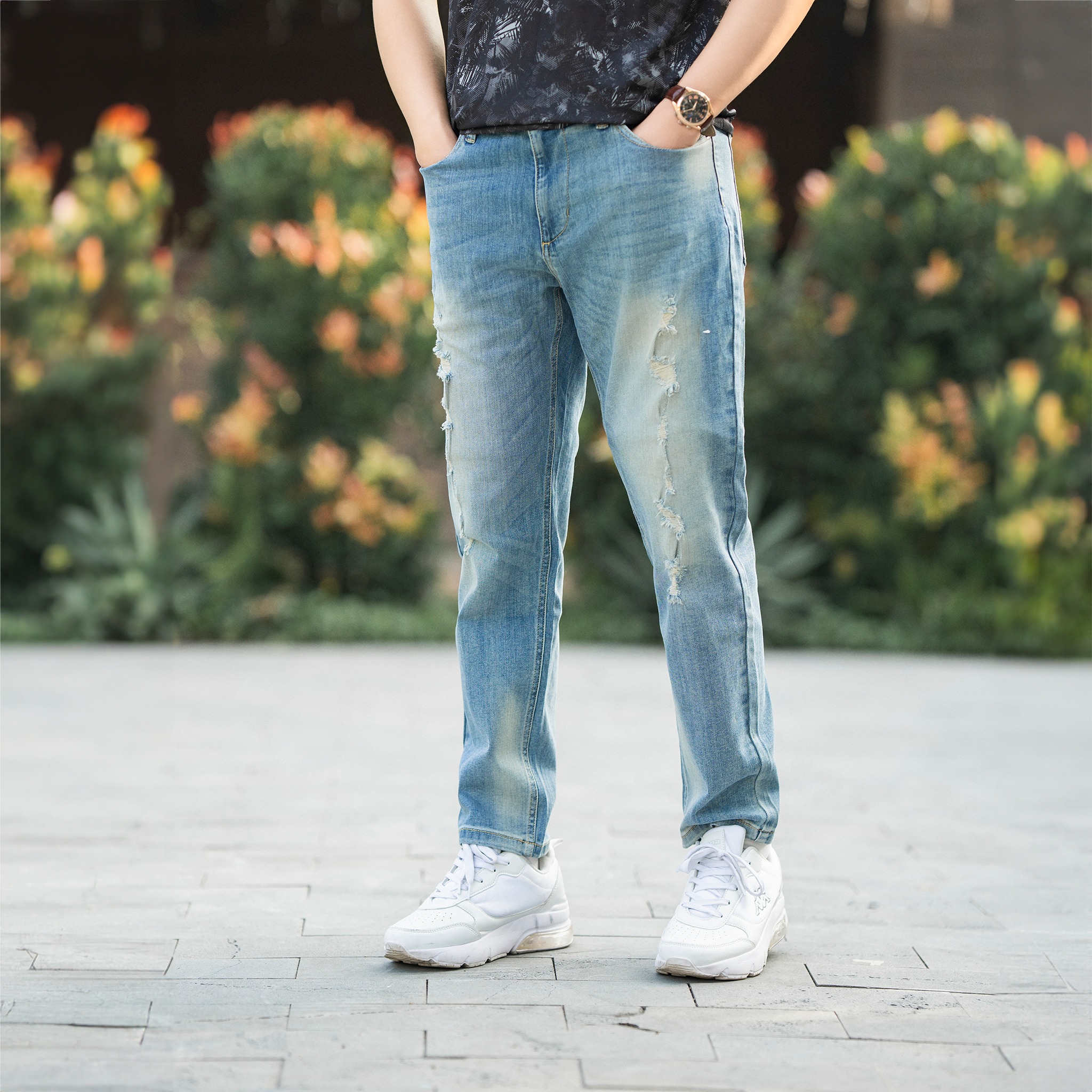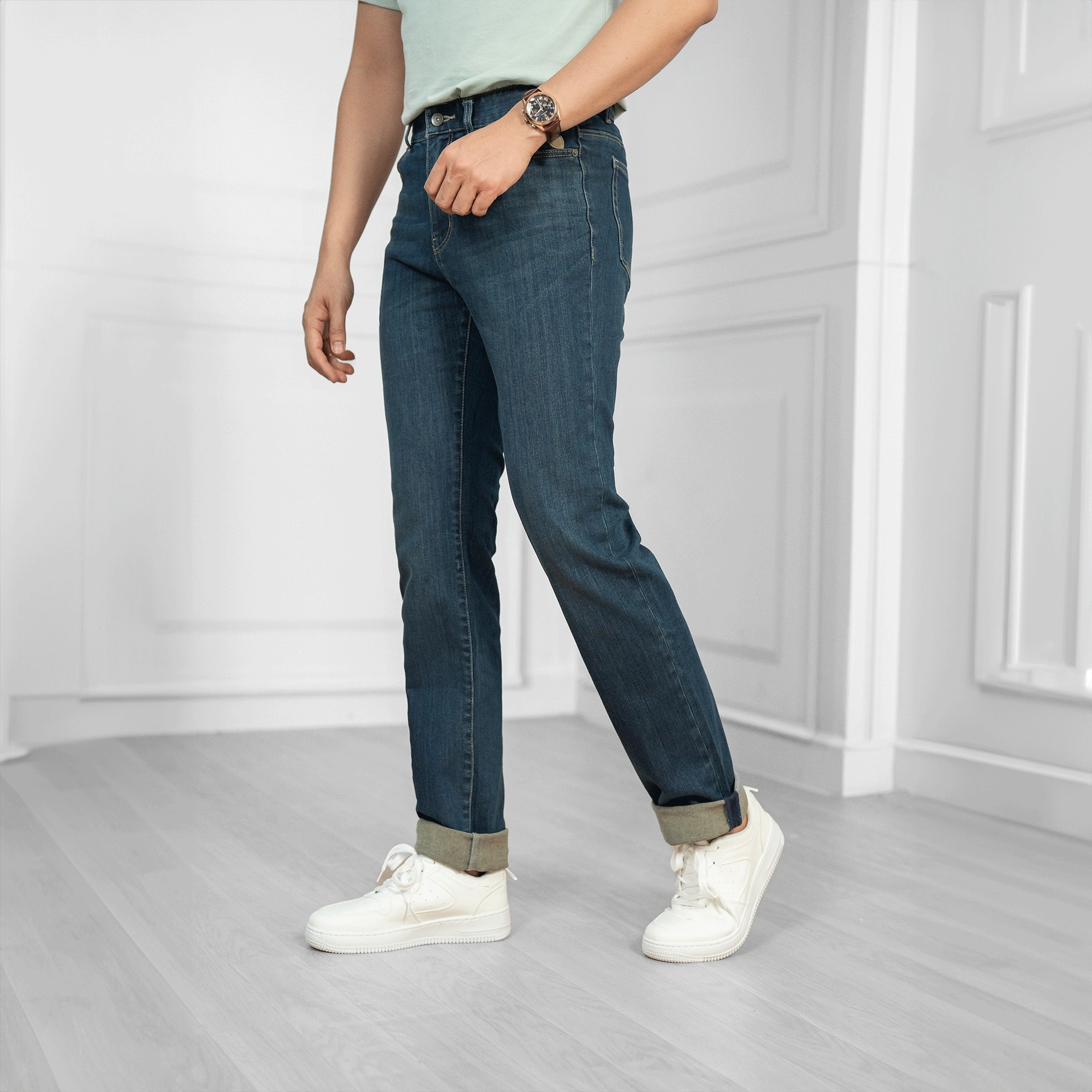 Đây là mẫu quần bò phù hợp với đại đa số mọi người. Phần phía trên được rộng rãi thoải mái. Phần từ đầu gối trở xuống có phần ôm nhẹ 1 chút.