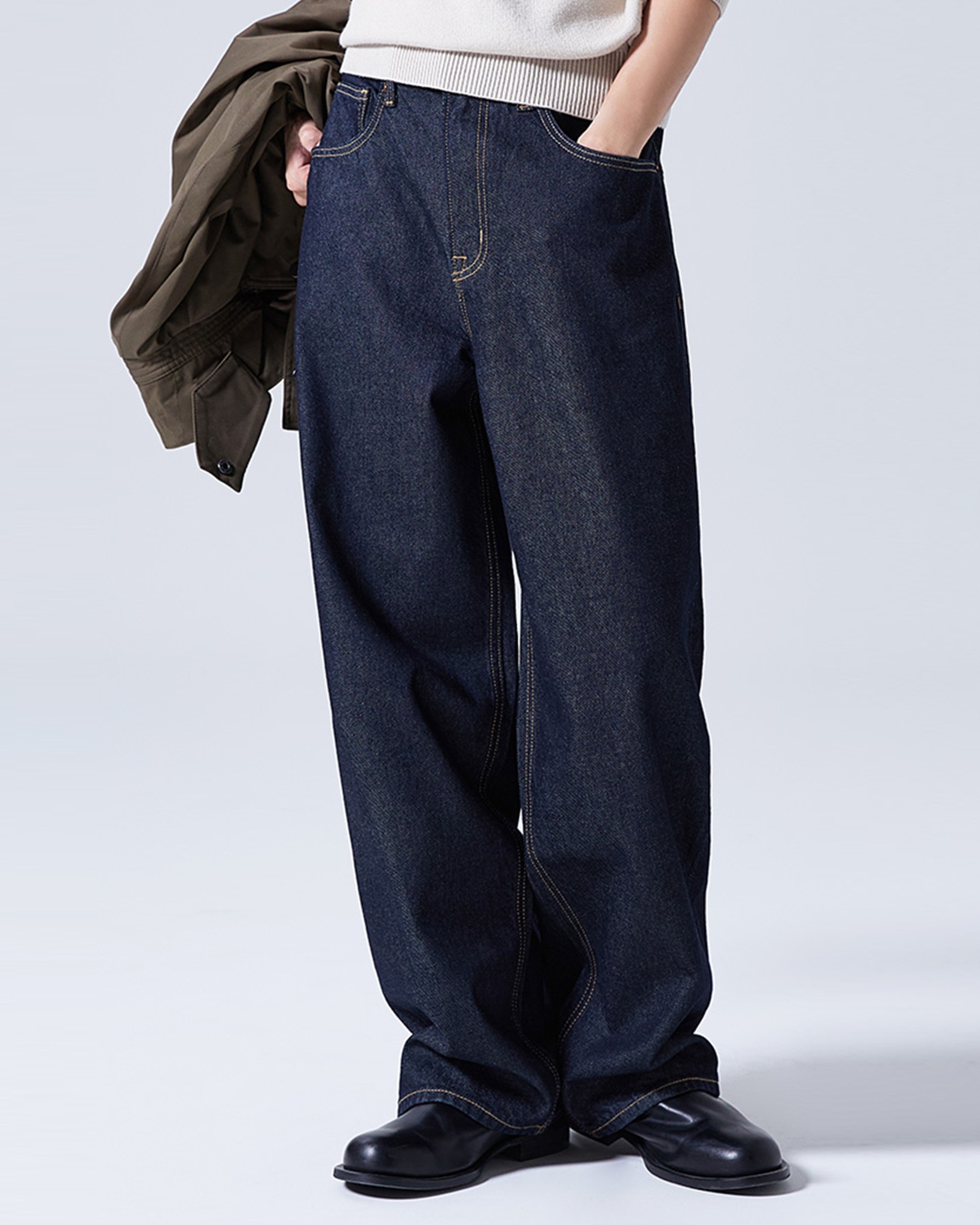 - QUẦN JEAN NAM ỐNG RỘNG XUẤT HÀN MÀU XANH THAN QJ60204M2