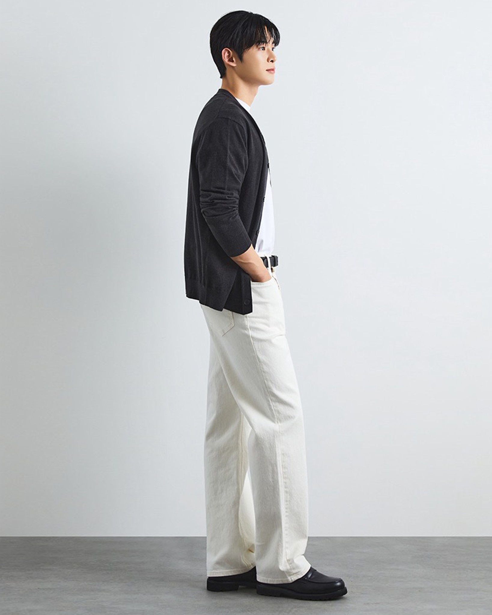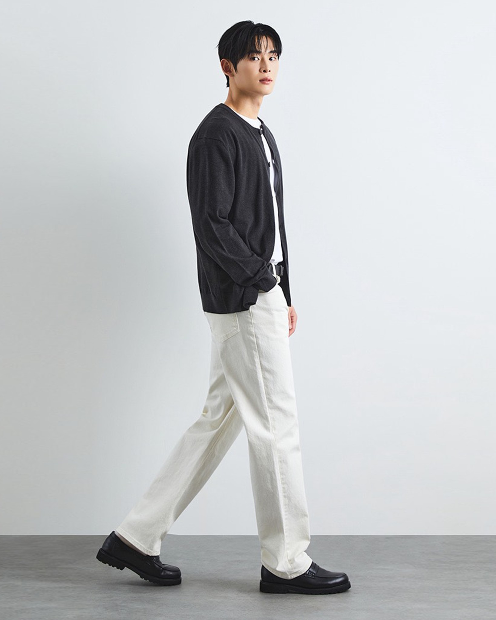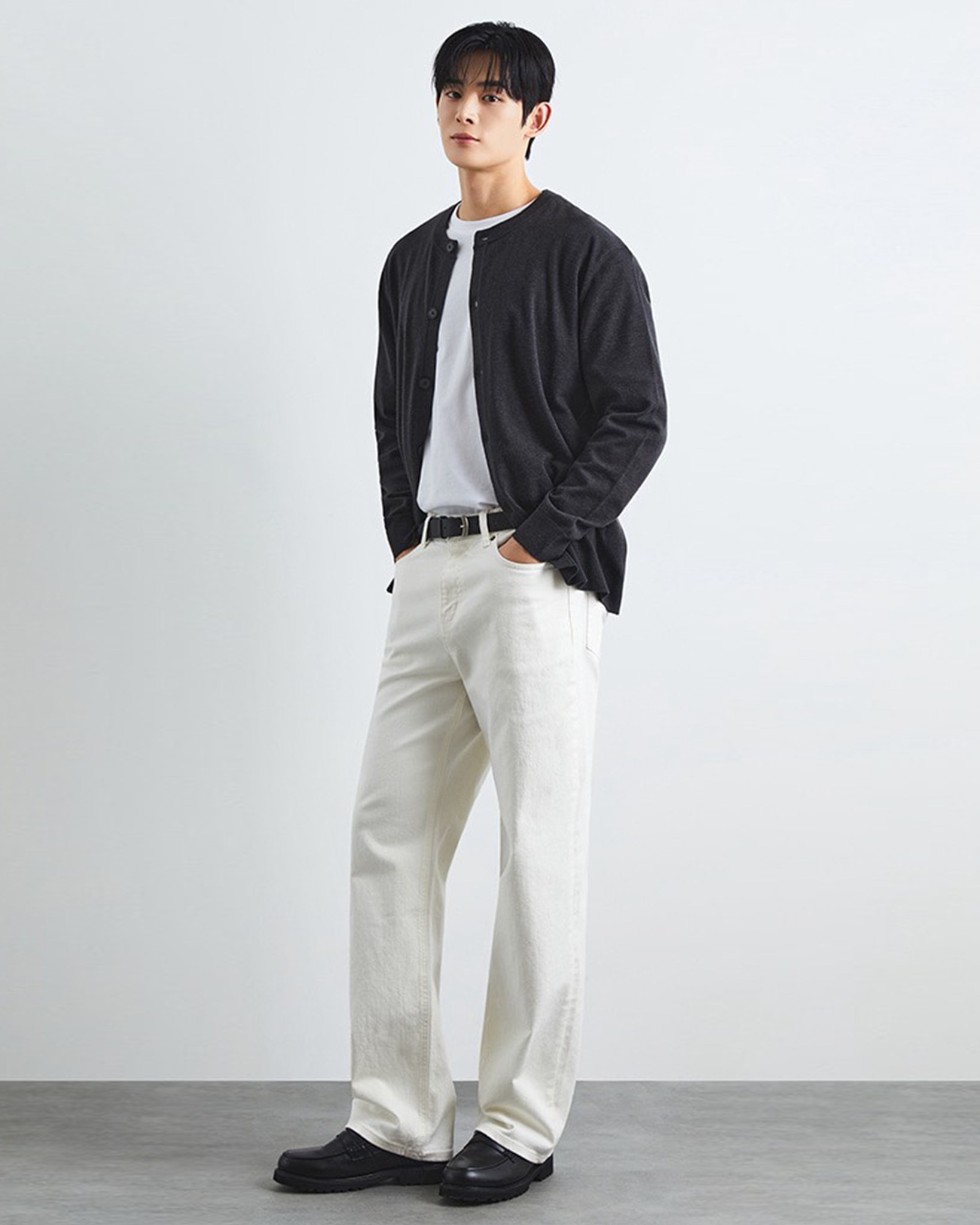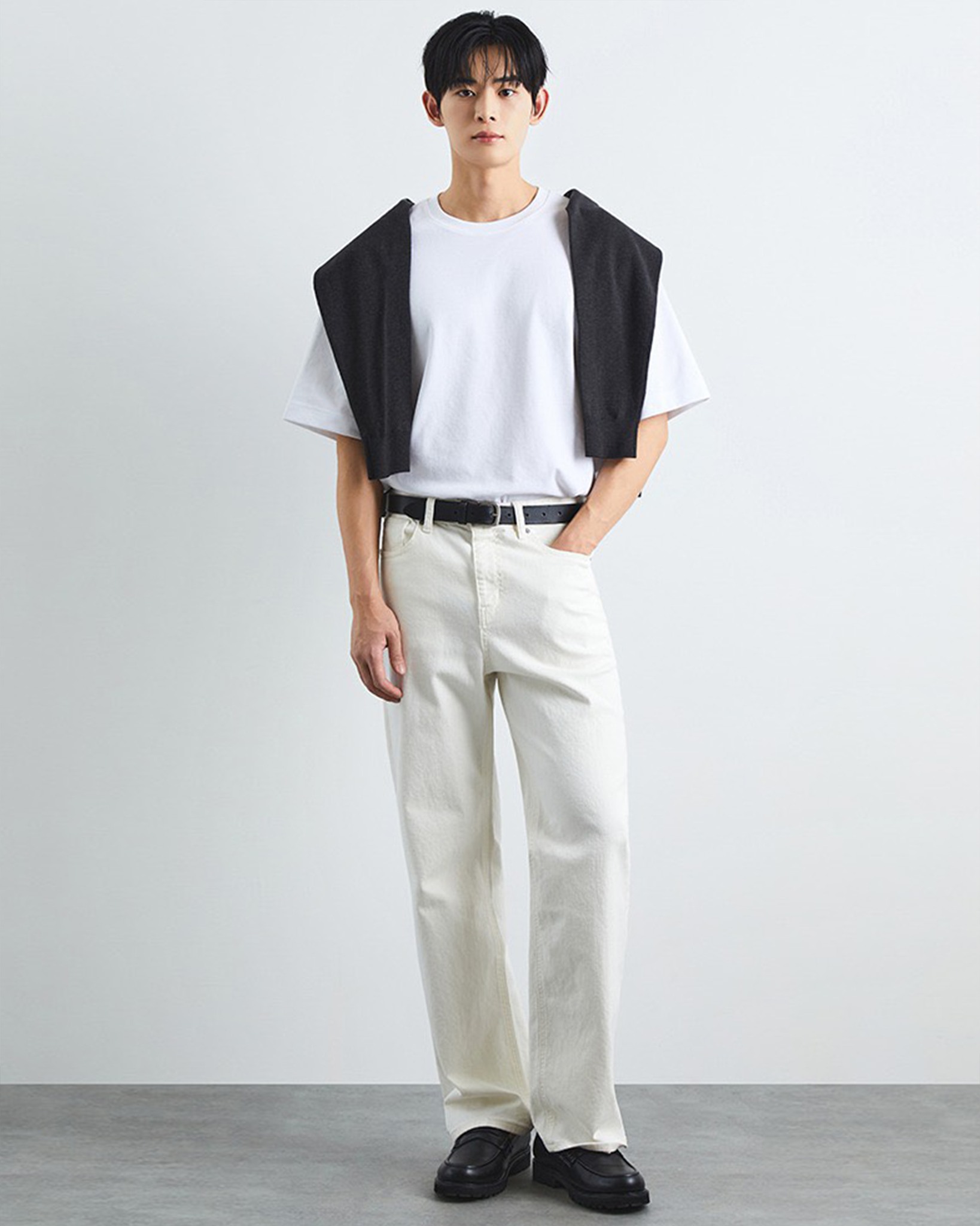 - Quần jean nam trắng với thiết kế trẻ trung tôn dáng và chất vải co giãn tốt, mang lại sự thoải mái tối đa khi vận động cả ngày.