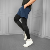 ZELLA - QUẦN THỂ THAO CHẠY BỘ NAM 2 TRONG 1 SHORT VÀ LEGGING MÀU XANH